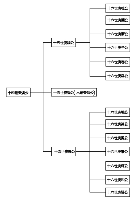 濟南堂林榮煥公族譜 古人云國有史,方有志,家有譜,方有根。沒有家譜和族譜的家庭,就像斷了根的浮木,難以感受到世代相傳來自老祖先的家族力量。 俊鴻公派下 俊鴻公派下世系表 俊鴻公派下大房(庚桂公)俊鴻公派下二房(庚蘭公)俊鴻公派下三房(庚漸公)俊鴻公派下四房(庚辛公)俊鴻公派下五房(庚春公)俊鴻公派下六房(庚添公) 俊福公,出嗣榮昌公,另立派系。 俊興公派下 俊興公派下世系表-橫 俊興公派下大房(庚職公)俊興公派下二房(庚德公)俊興公派下三房(庚鳳公)俊興公派下四房(庚讓公)俊興公派下五房(庚輝公)俊興公派下六房(庚和公)俊興公派下七房(庚賜公)